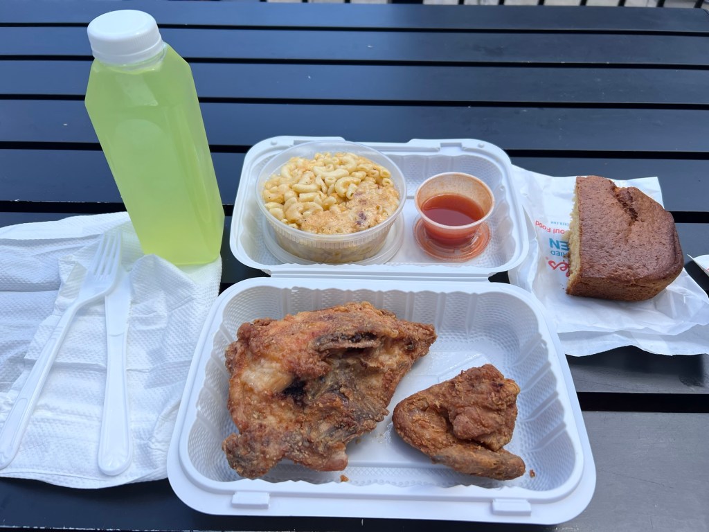 The Chicken sandwich and French Fries at Shake Shack at the Fulton Mall