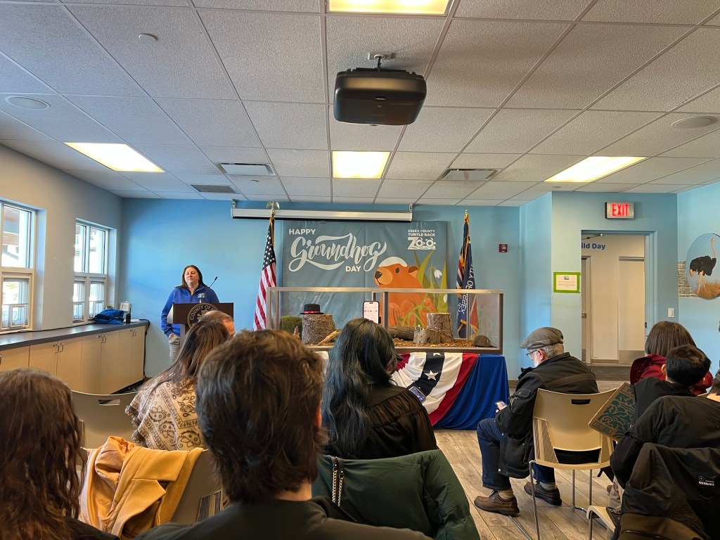 It is always fun seeing the Groundhog (this is Edwina of Essex at the Turtle Back Zoo).