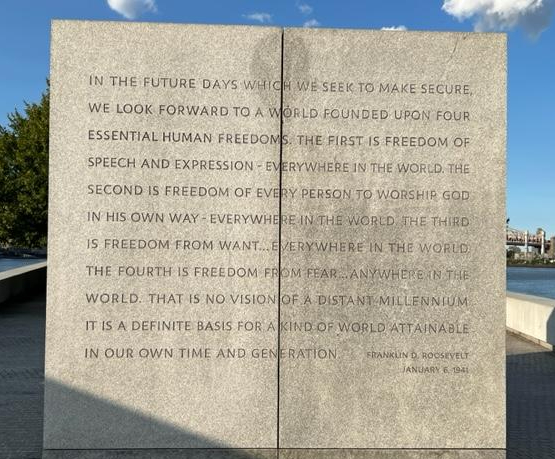 Today, Roosevelt Island has a small town feel with approximately 20 buildings and 14,000 residents. The island is home to six landmarked structures and proudly houses Four Freedoms Park, one of the original visions for the island (Judith Berdy, President Roosevelt Island Visitor Center).