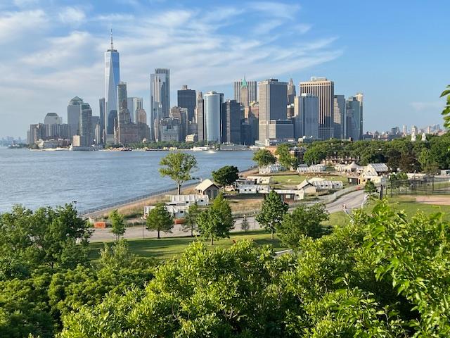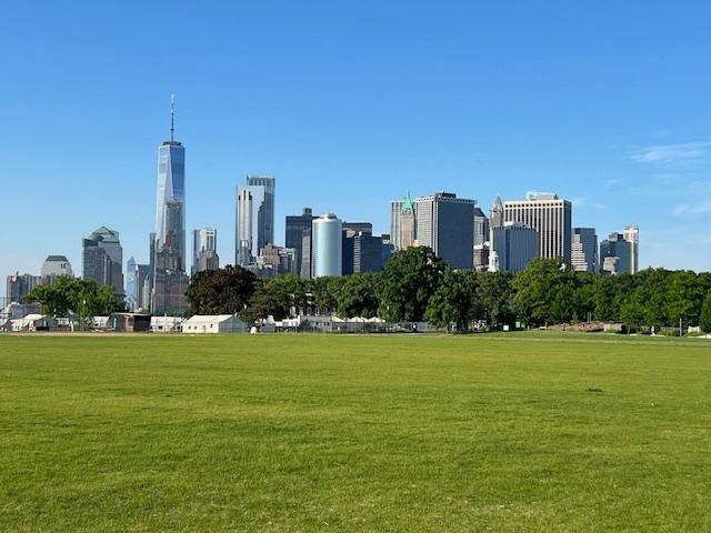 The view from the lawn at Governor’s Island toward Lower Manhattan