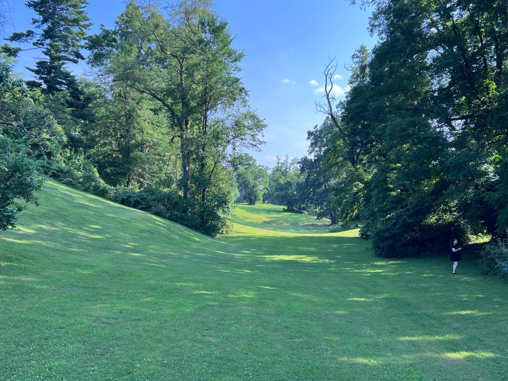 Walking towards the mansion through the lawns and gardens on the Clermont Mansion