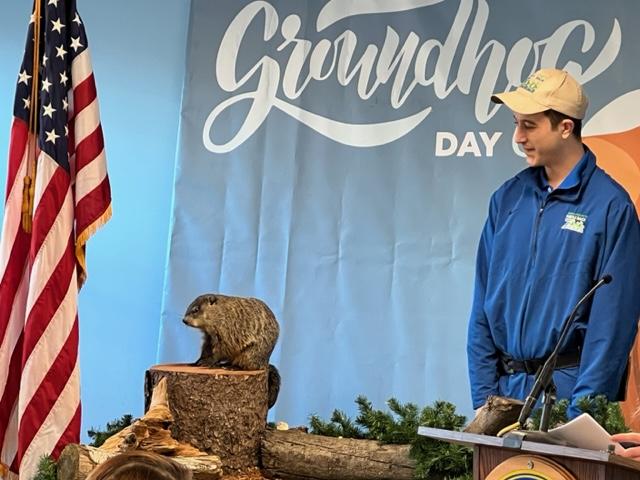 Punxsutawney Phil seeing his shadow in 2024.