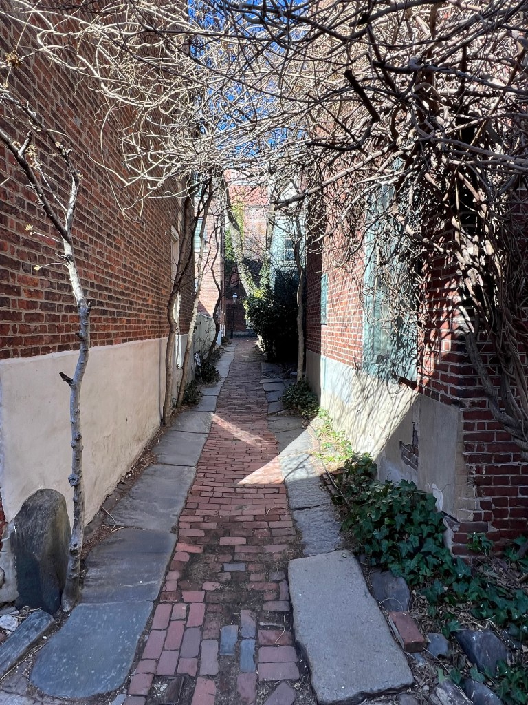 I came across this interesting little historical museum when I was touring Elfreth’s Alley in Old Town, Philadelphia. What an interesting look back at the merchant trade class of the 18th century. It really showed how the average worker used both their home as a business and as a home. The home had been former business of a pair of dressmakers who used the front parlor as their store and showroom, the side room used as the kitchen, the upstairs room was the living quarters for a very large family (I believe that the family had eight children according to the tour guide) and a nice sized garden in the back of the home.