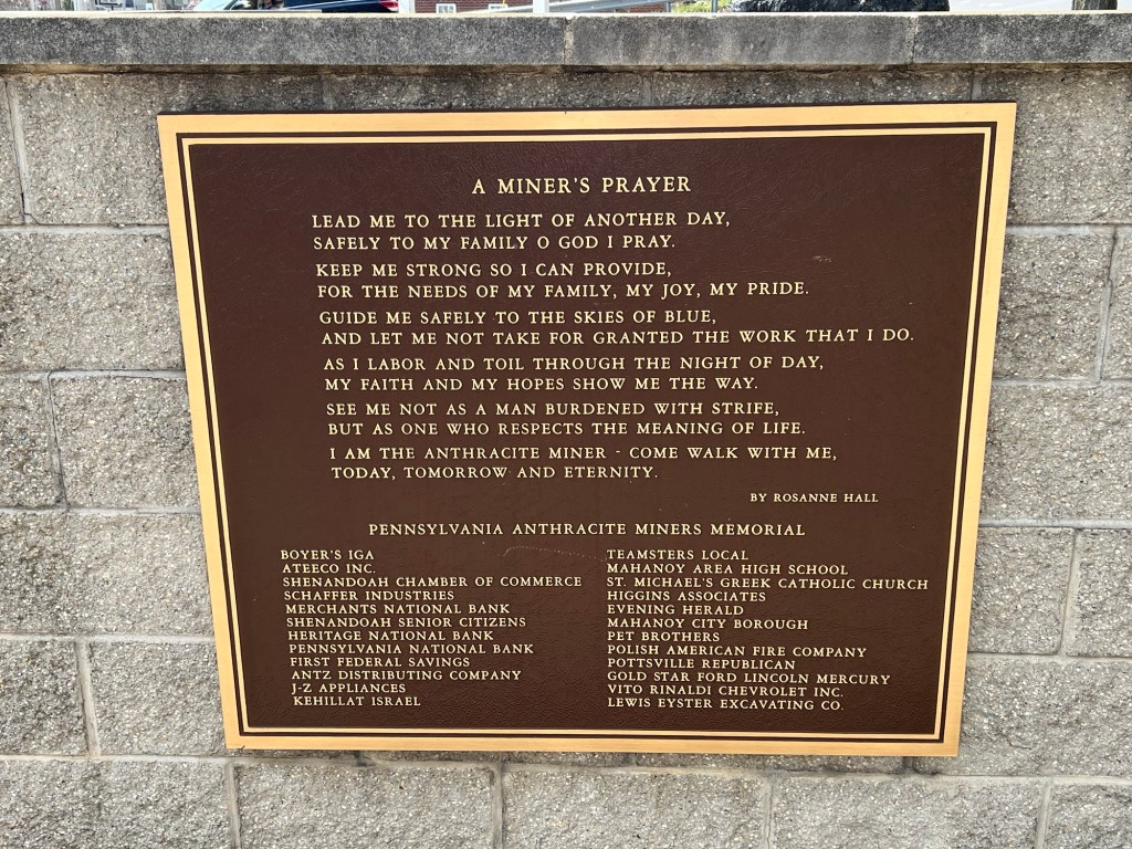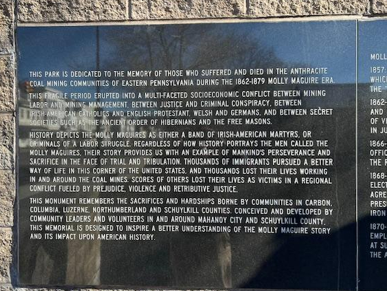 The plaque dedicated to the men who faced such hardship “The Molly Maguires”