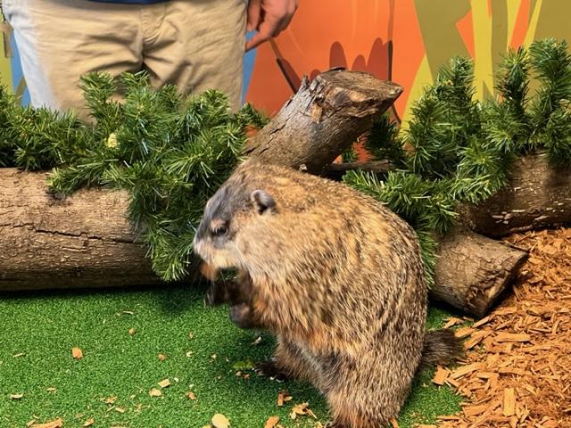 It is always fun seeing the Groundhog (this is Edwina of Essex at the Turtle Back Zoo).