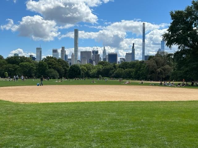 I had gotten there a little late so many people had left by that point so the rest of us piled onto three picnic tables and talked the afternoon away on issues Spartan related and also the general status of Manhattan and the rest of New York City for those alumni that lived in the City. On this late summer afternoon, I could see the Great Lawn in the distance and many people sunbathing, reading, playing fresbie or watching the pop-up softball game in the distance.