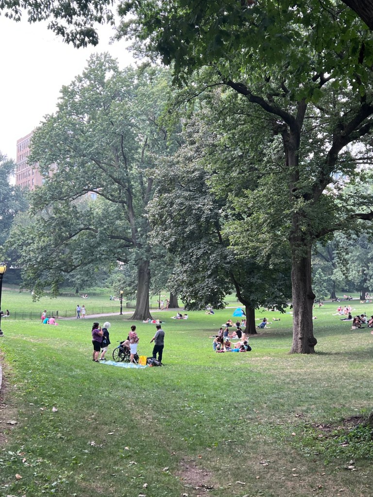 Walking through Central Park to the picnic site