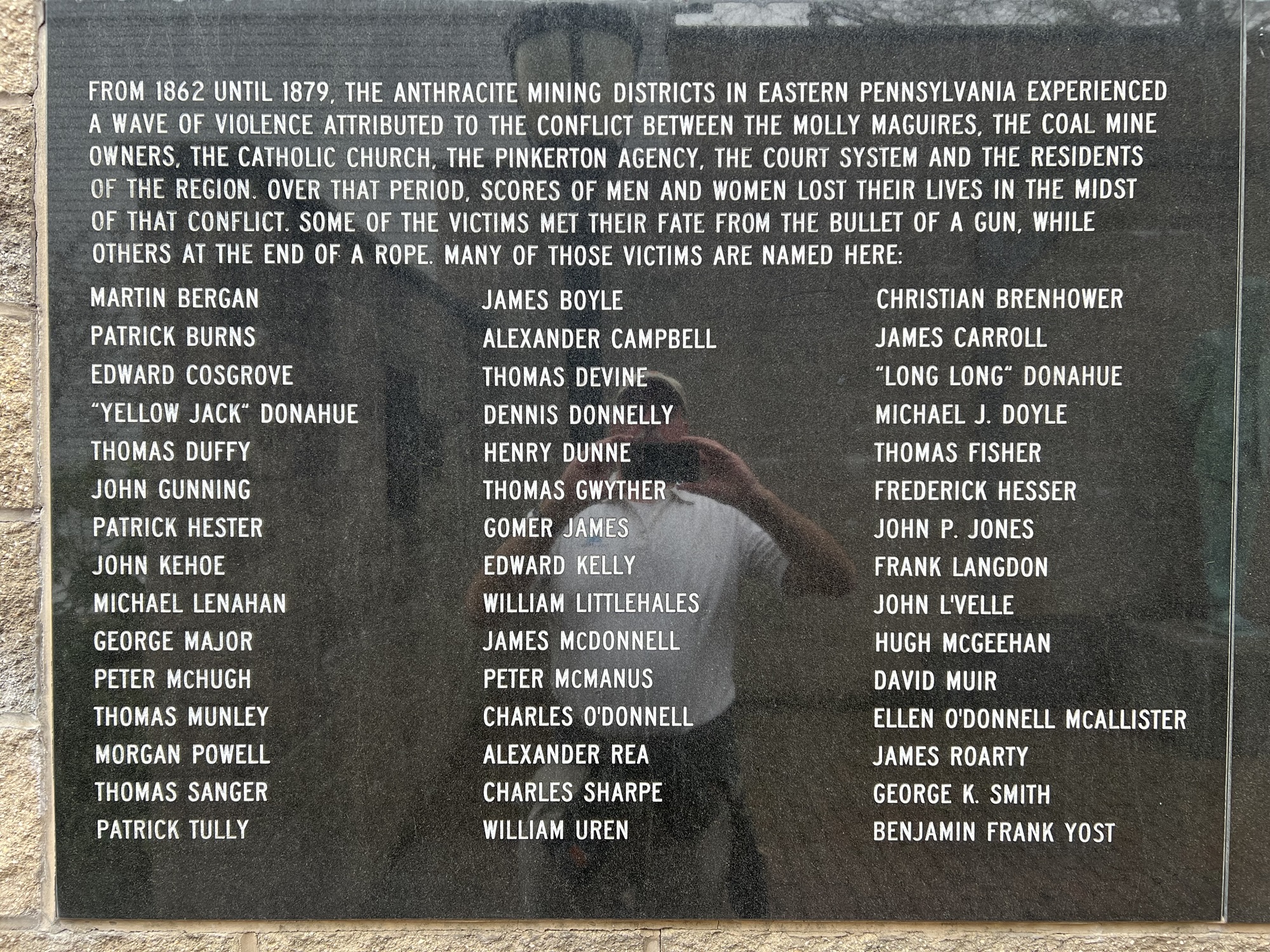 Molly Maguire Historical Park West Centre Street Mahanoy City, PA 17948 April 27, 2025"A Local Journey: Exploring the outskirts of New York City, Dedication to Warren Watrel, Exploring Historic Towns of Pennsylvania, Exploring Mahanoy City, PA, Exploring Manhattan Block by Block, Exploring New York City by foot, Exploring the Island of Manhattan, Historic towns in Pennsylvania, My walk in Manhattan (MywalkinManhattan.com), Uncategorized, Visiting a Museum in Pennsylvania, Walking in Downtown Mahanoy City PAAddthistoyourgrocerylist@Wordpress.com, Author Justin Watral, Author Justin Watrel, BergenCountyCaregiver.com, DiningonaShoeString@Wordpress.com, Exploring Mahanoy City, PA, Justin Watral, Justin Watrel, LittleShoponMainStreet@Wordpress.com, Molly Maguire Historical Park, Molly Maguires, MywalkinManhattan.com, VisitingaMuseum.com, Walking in Downtown Mahanoy City PA, Warren George Watrel, Warren Watreljwatrel Molly Maguire Historical Park West Centre Street Mahanoy City, PA 17948 Molly Maguire Historical Park at West Centre Street in Mahanoy City, PA The historic plaque outside the park The inside of the park The accused The fate of these men Share this: Click to share on X (Opens in new window) X Click to share on Facebook (Opens in new window) Facebook Like Loading...