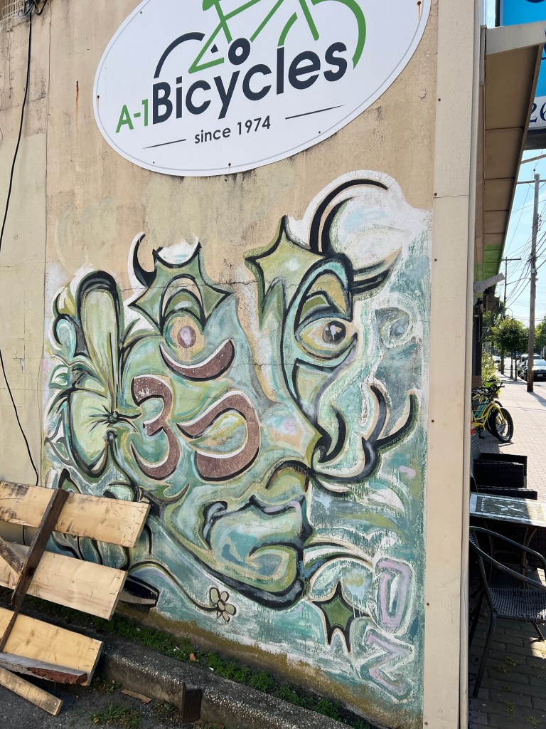 The street art in the downtown on one of the side building at A 1 Bicycle at 726 Arnold Avenue