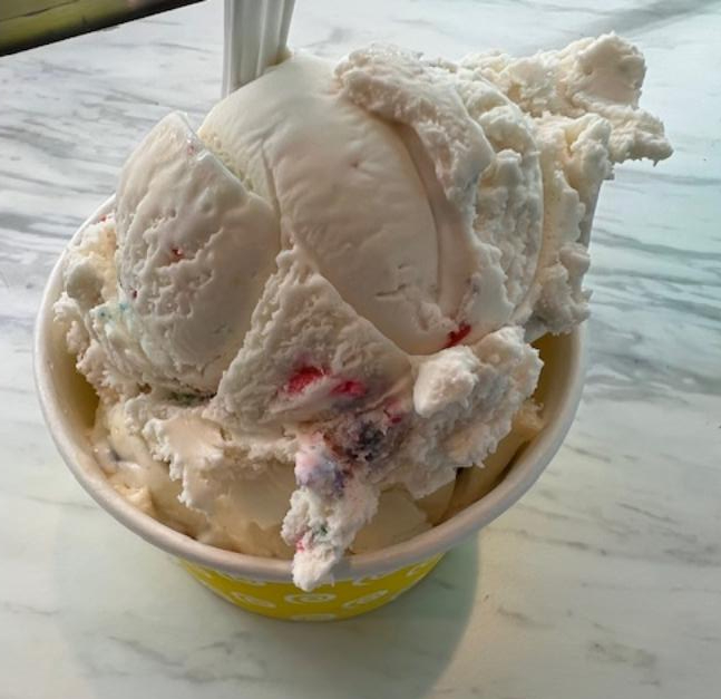 My sundae at Hoffman’s of Cookie Monster and Strawberry Lemonade ice creams