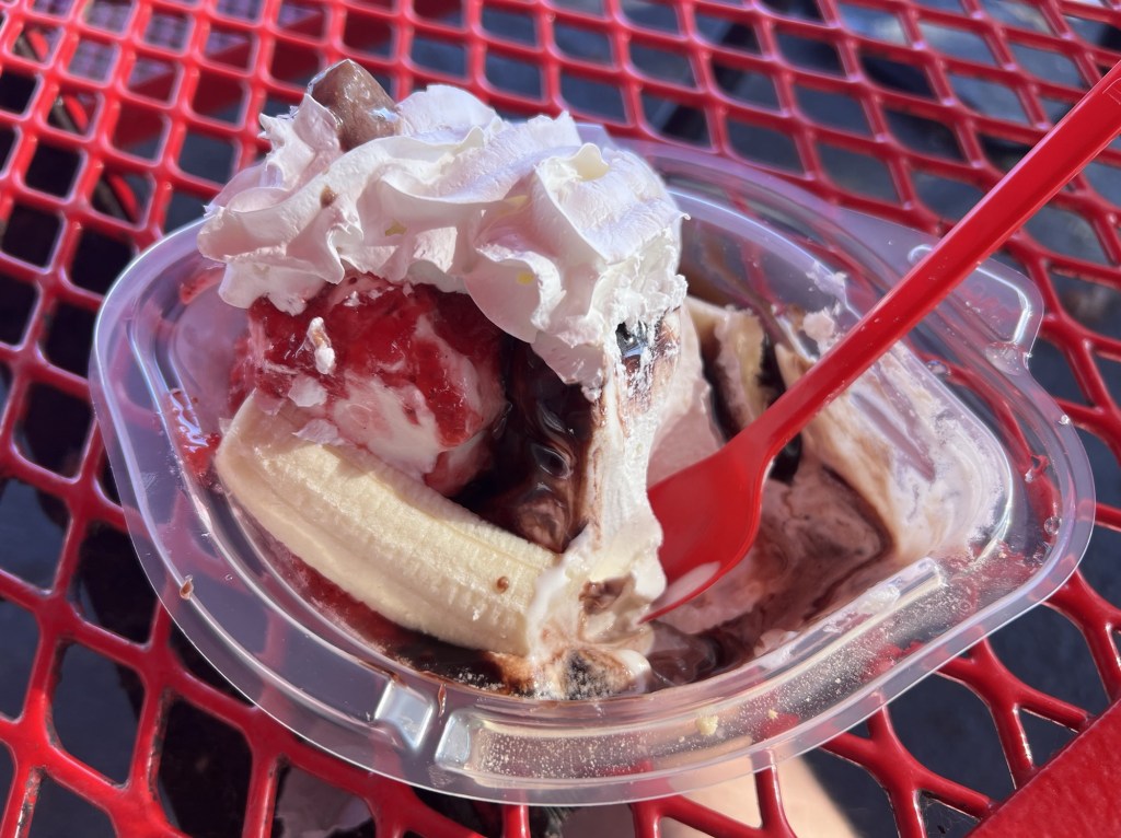 Having some time before our late lunch at Smitty’s, I got nostalgic, and we stopped at the local Dairy Queen at 501 Shore Road for a snack. I had not been at a Dairy Queen in years, and I knew exactly what I wanted. I wanted a Banana Split which is my favorite thing at Dairy Queen.
