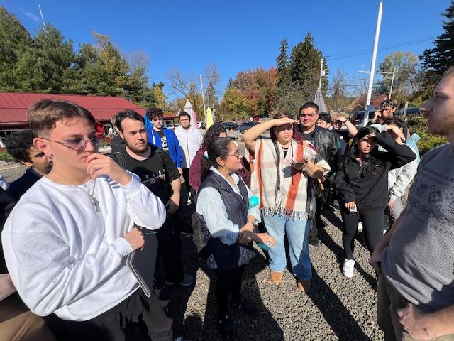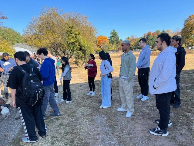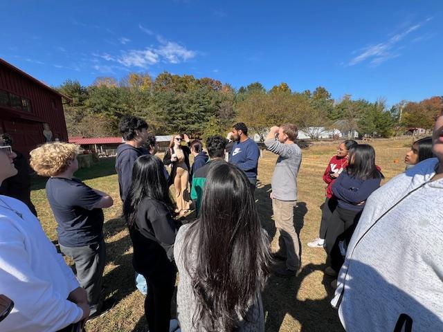 The Student Consultants starting a tour of the Garretson Forge & Farm led by historian Vivian Davis.