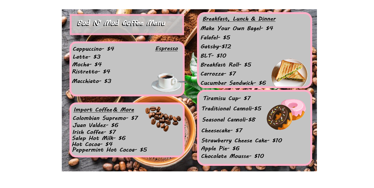 The Creation of the shop “Bud N’ Mud” a Coffee/Flower Shop: