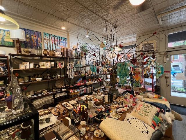 The details on the upper windows of the store.