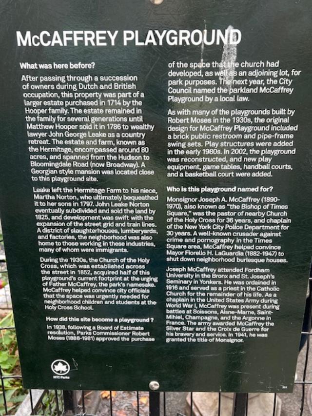 The park is named after the Armenian Orthodox Church nearby, St. Vartan Cathedral which is a nod to the neighborhood’s Armenian heritage (NYCParks). The park has a wonderful basketball court, playground and lawn space to run around on. The bathrooms were shut which was not helpful but still a nice place to just relax under a tree.