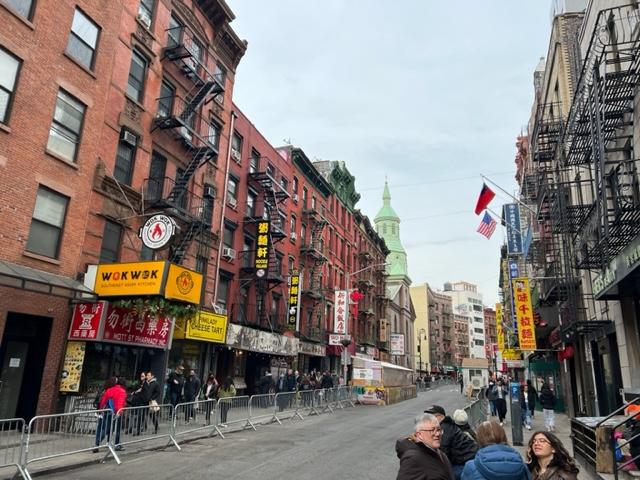 My journey on this gloomy Saturday morning started when I took the C train down to Canal Street and started to walk around Lower Manhattan to see what was open and not. The City had lifted its ban on indoor dining, I think too little too late, for Chinese New Year and Valentine’s Day. Still even with the 25% indoor dining allowed, people choose to eat outside or else some of the restaurants were not ready to open indoor dining. On a 30-degree day I could not believe that people wanted to eat outside. Even bundling under heat lamps does not make pleasant dining. The mood was festive, but people were cold.