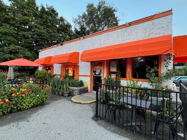 The beautiful outside seating of the restaurant in the middle of the Summer of 2024