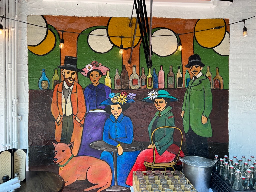 Walking through Chelsea to West 20th Street. I love how the purple in this restaurant stands out every summer. I walked through the outside seating to Shukette, a restaurant at 230 Ninth Avenue.