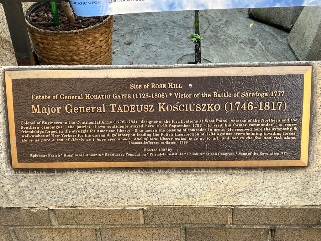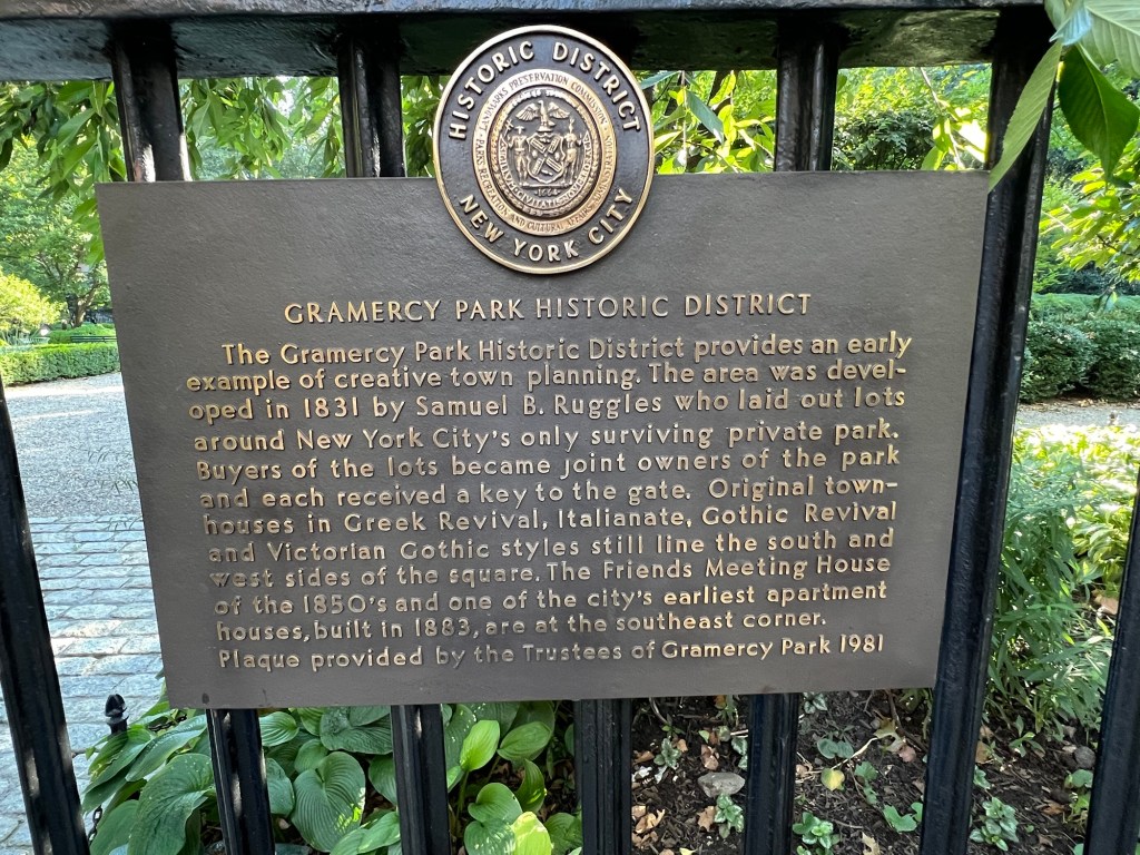 The golden plaque on the sidewalk outside Union Square Park with the original layout of the park