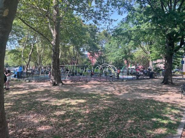 I took my sandwich and sat in Jefferson Park as I have had many times with my lunch and watched the world go by. A lot has changed since March and April. The park was in full swing and all over the place people were playing soccer, baseball, handball or swimming in their giant pool. It was a perfect day to be outside and relax.