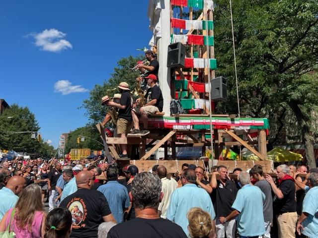 The lifts of the Giglio went on for quite awhile being dedicated to various families who must have made donations to the church. After that it was festival time. One of the announcers said that the feast just keeps getting bigger every year and you could tell by the crowd that more and more people are venturing back into this neighborhood for the afternoon. The place was packed.