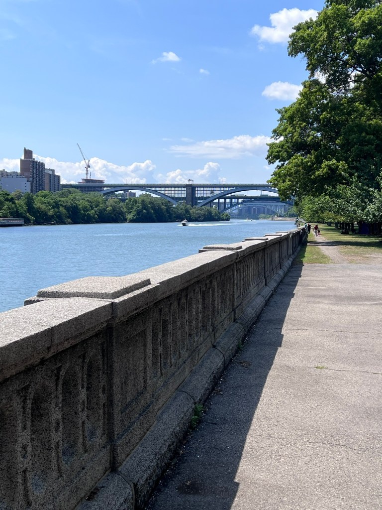 I flew past the Seagull Wall on my way to the edge of Harlem. Unlike the Official Saunter in May, the Henry Hudson walkway was open again.