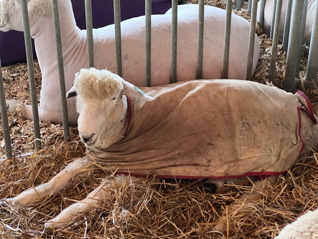 I then visited the sheep pen and most of the sheep had just shown and had their coverings on.