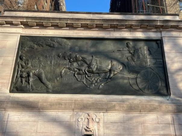 Between 90th and 89th Streets, take time to explore the Soldier’s & Sailors Monument on Riverside Drive and look over the monument. It was built to honor the Union Army & Navy during the Civil War. The monument was designed by the firm of Stoughton & Stoughton for the City in 1900. It was dedicated on Memorial Day of 1902 with President Theodore Roosevelt overseeing the event. The monument has seen better days and like Grant’s Tomb, could use a refurbishing. Check out the detail work and the statues. It was well-designed and detailed.