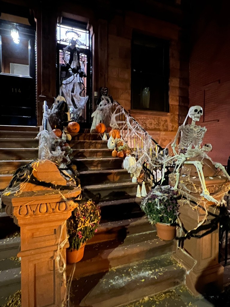 I watched the neighborhood change from getting ready for Halloween to getting ready for Christmas (it tells you how long I spent on this side of the City), so I got to see how people decorated their homes during the duration of the holiday season.
