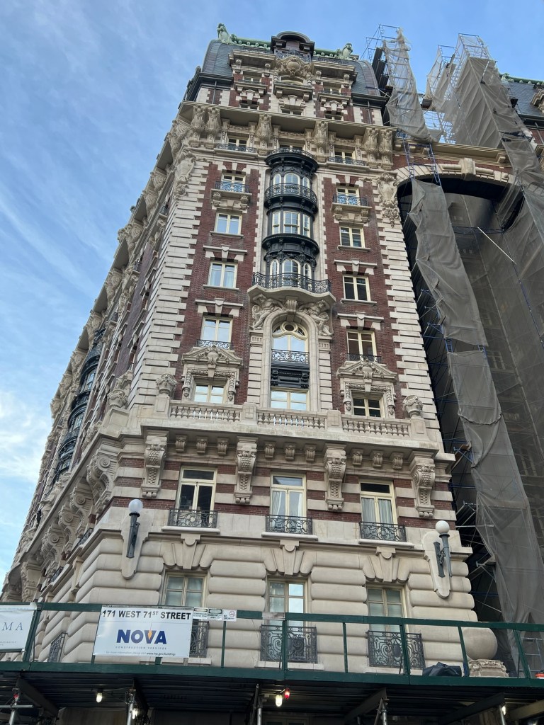 Sitting at the corner at 171 West 71st Street and Broadway near the intersection with Amsterdam Avenue is The Dorilton Apartments which looks like a Victorian wedding cake. The apartment building is a reminder when apartment buildings were not glass boxes but graced with elegance and loaded with carved marble and statuary.