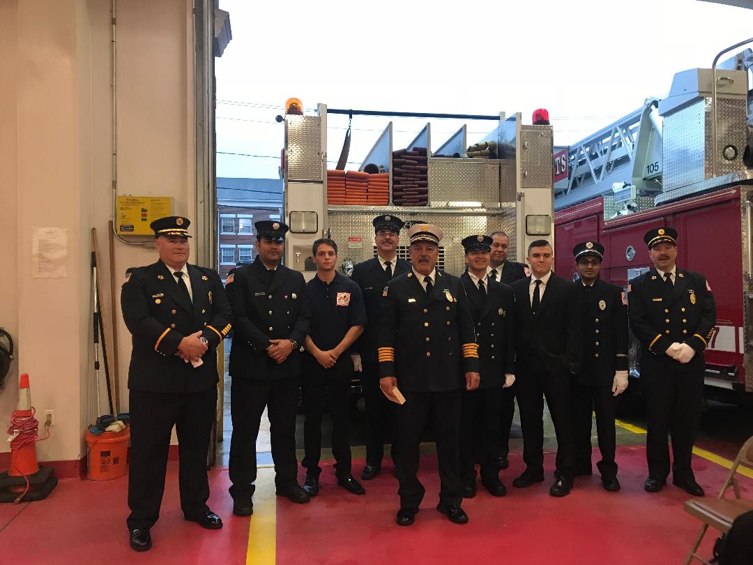 Chief Roccamo at his swearing in at the 2018 Installation Dinner with the Brothers of the former Engine One
