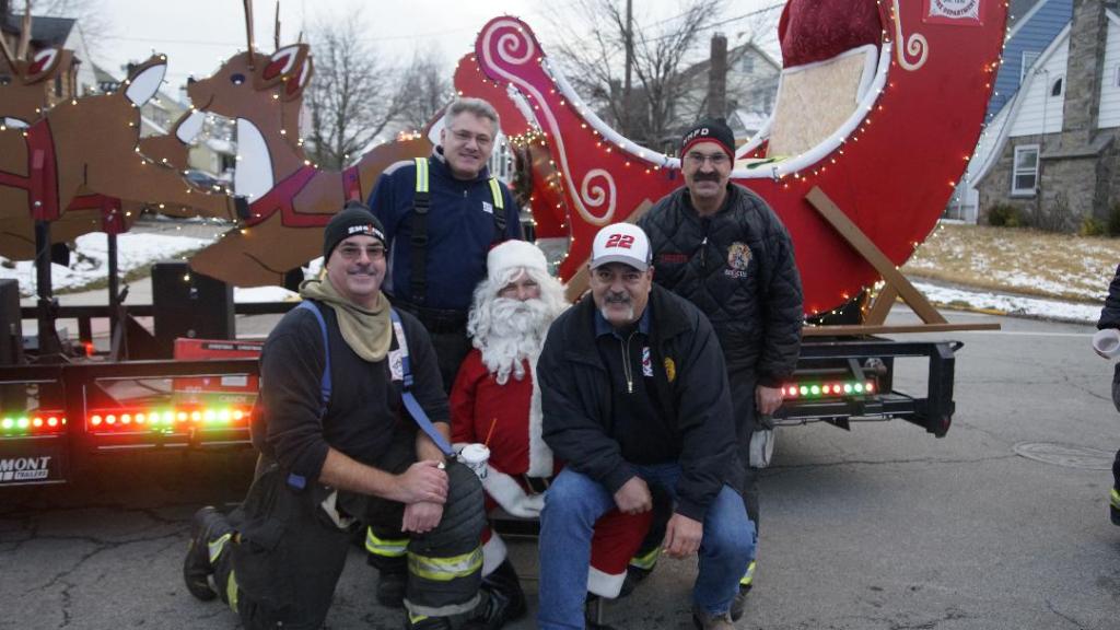 Chief Roccamo at the Annual “Santa Around Town” with fire fighters Justin Watrel, Tim Moots and Bernie Valente