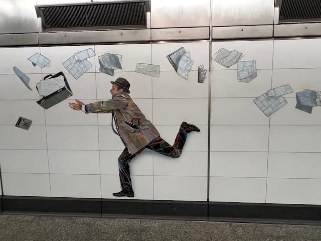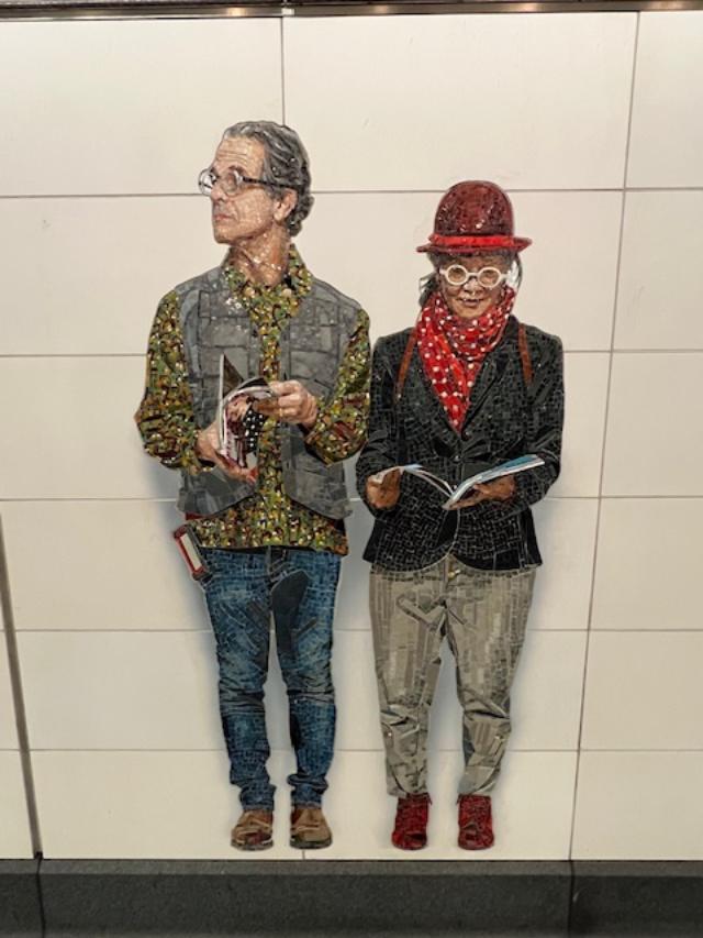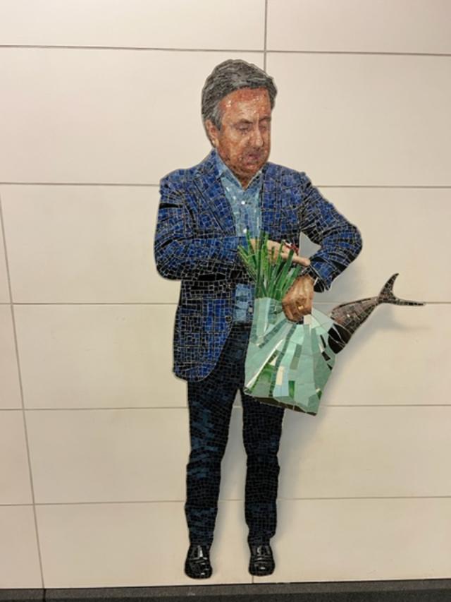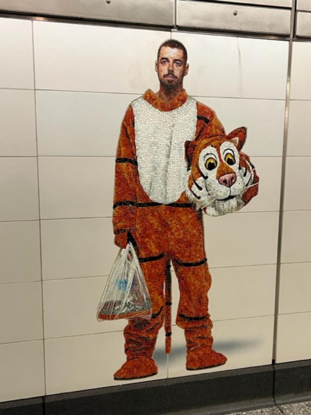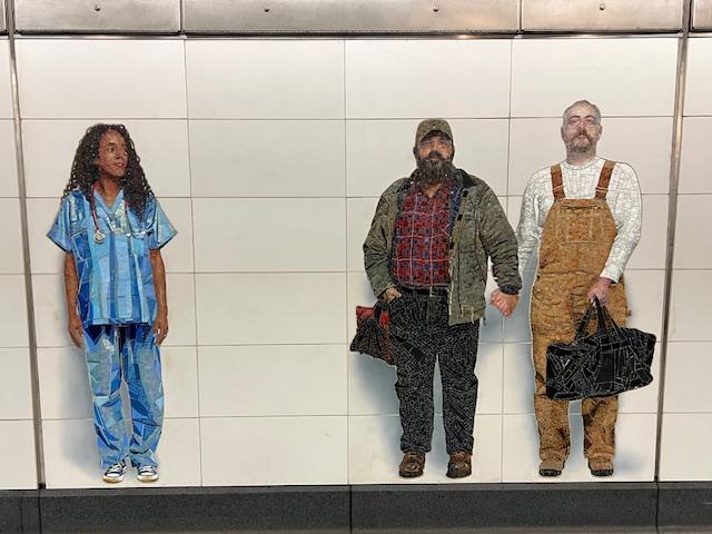 Again really look at the details that created these works. I almost immediately thought I was going crazy when I thought one of them was Daniel Boulud, the famous chef holding a fish in a bag until I read later on that it was him. To see him immortalized in a subway station artwork I thought was a real testament to him as a chef.