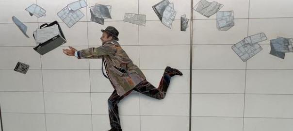 There are portraits of men holding hands, a policeman holding a Popsicle and a man chasing flying papers, who I have read is the artist himself. The artist created this work based on staged photographs on people he knows.