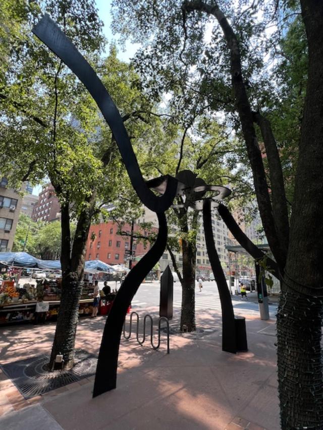 Ms. Gillen has been trained in Industrial design at Pratt and got her MFA from Columbia University’s School of Art. She is noted in the use of color and the structure suggests a human body in motion. She uses all sorts of materials in her art noted with metals and stone work. Red Flying Group is based on man’s sense of motion (Wiki).