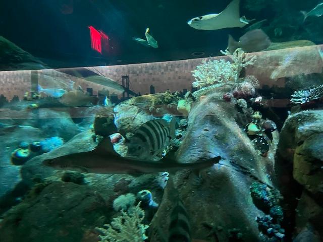 I was able to walk through the ‘Ocean Wonders: Sharks!” exhibition before the aquarium closed for the evening. I found it fascinating about the history of sharks and their place in ocean world and where they are on the feeding scale. They hardly care about eating humans and like one of the displays said that ‘Jaws’ gave them a bad wrap. They are bottom dwellers who eat all the things that are ‘left over’ and are a good cleanser for the sea.