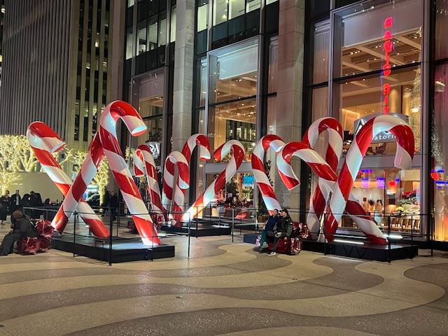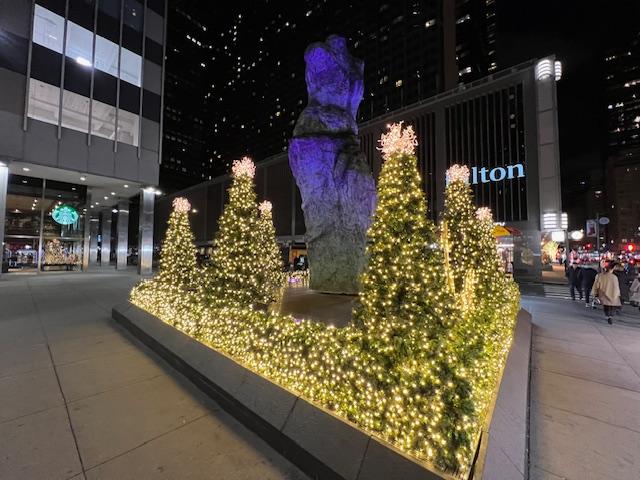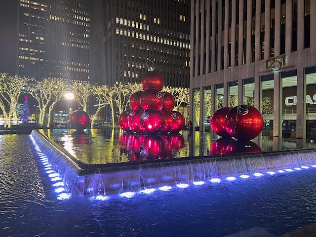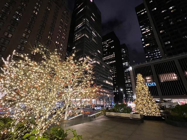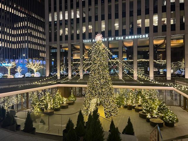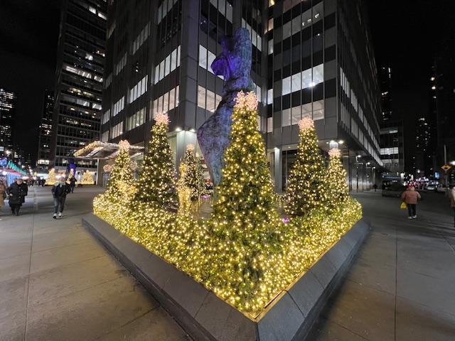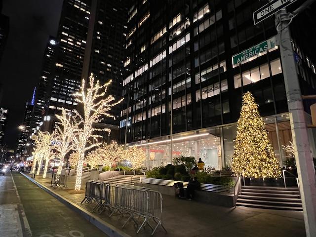 The Christmas tree display outside of 1211 Sixth Avenue was so colorful that night.