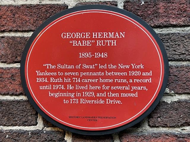There is a small plaque at 440 West End Avenue dedicated to Charles Evans Hughes, the Republican Governor and great State Reformer. He had championed the eight-hour day, forty-eight-hour week for workers (under 16) and set up a Trades Act to protect workers much of what we work with today. He also served as Secretary of State under President Harding among his many accomplishments.