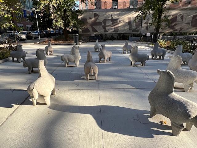 The statue was done by sculptor Penelope Jencks and Michael Middleton Dwyer and the architects on the project were Bruce Kelly and David Varnell. Ms. Jencks is an American artist who studied at Boston University and graduated with BFA.