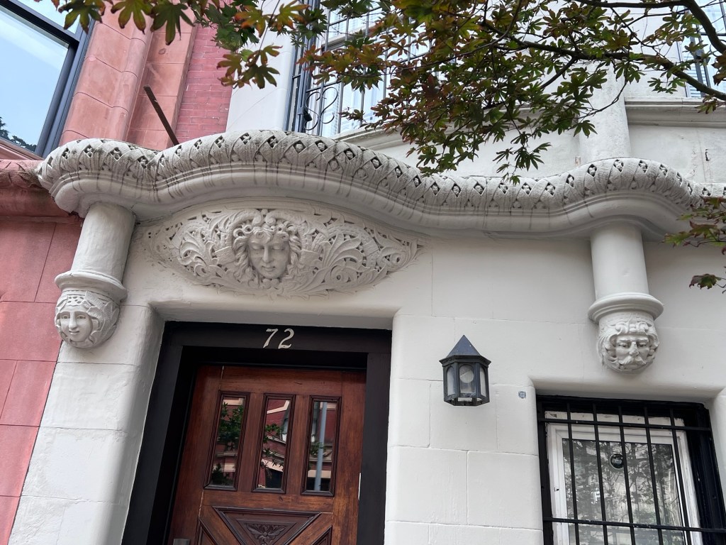 As you pass the beauty of The Dakota, West 72nd Street has an array of architectural styles of brownstones and marble homes lining the street. The carving of the stone is work that you no longer see in design and so much of the neighborhood is under scaffolding as new owners are sandblasting these buildings back to their original beauty.